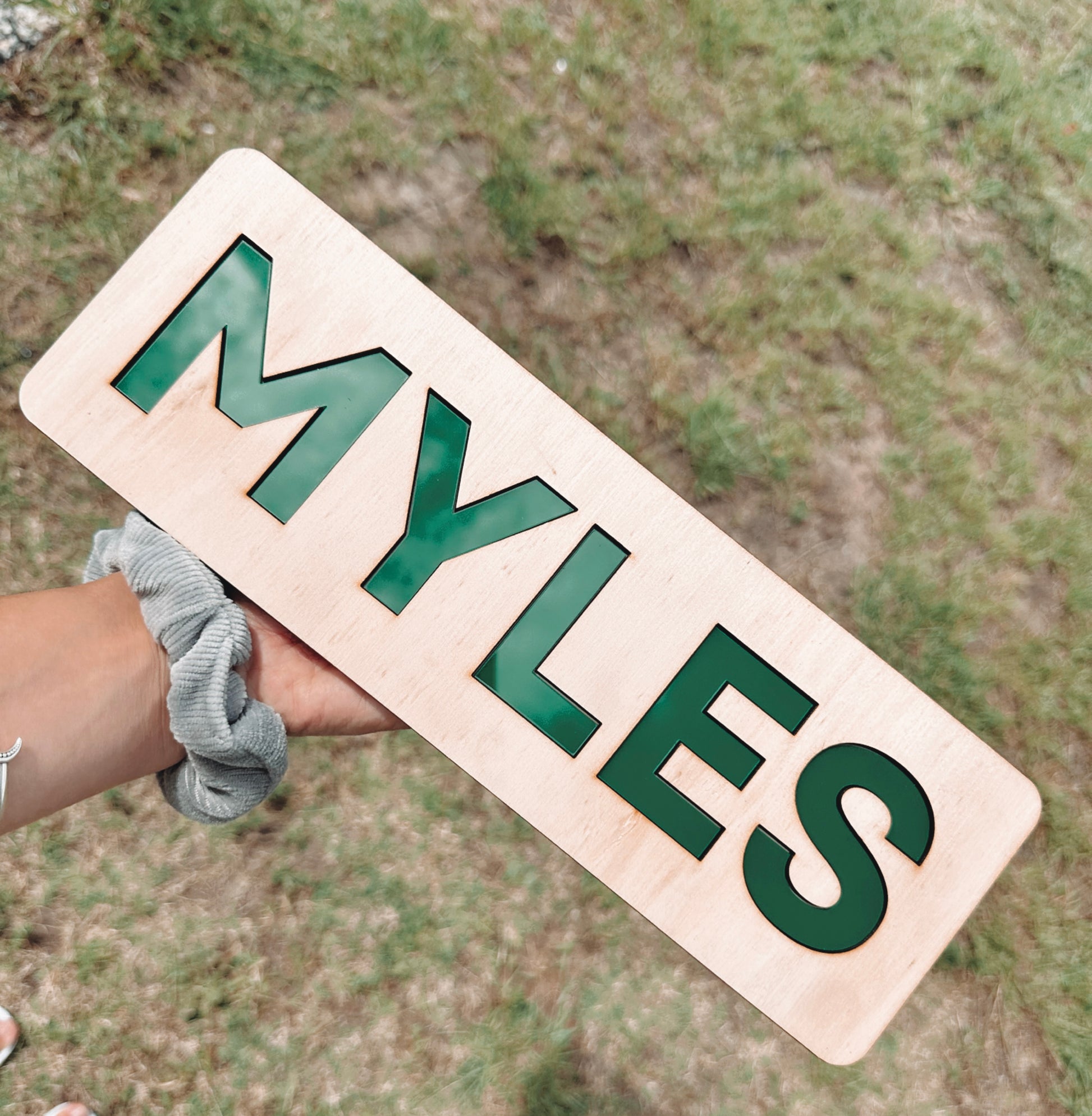 Our beautiful oak timber puzzle. With a timber base & acrylic letters in the colour of your choice. Also doubles as a perfect decor piece in your little ones room or playroom!