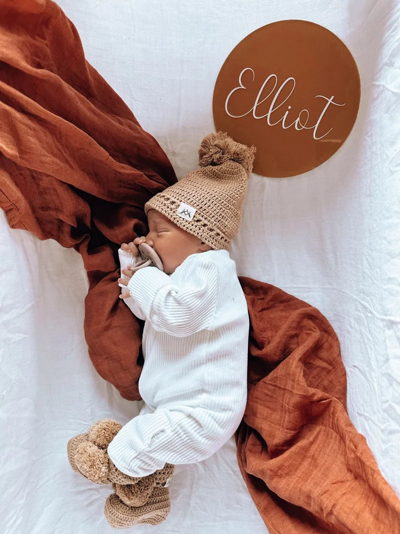 Our beautiful acrylic announcement plaque. Hand painted with love, Featuring your babies name + their birth stats if you wish. Perfect for announcing for precious little ones arrival.