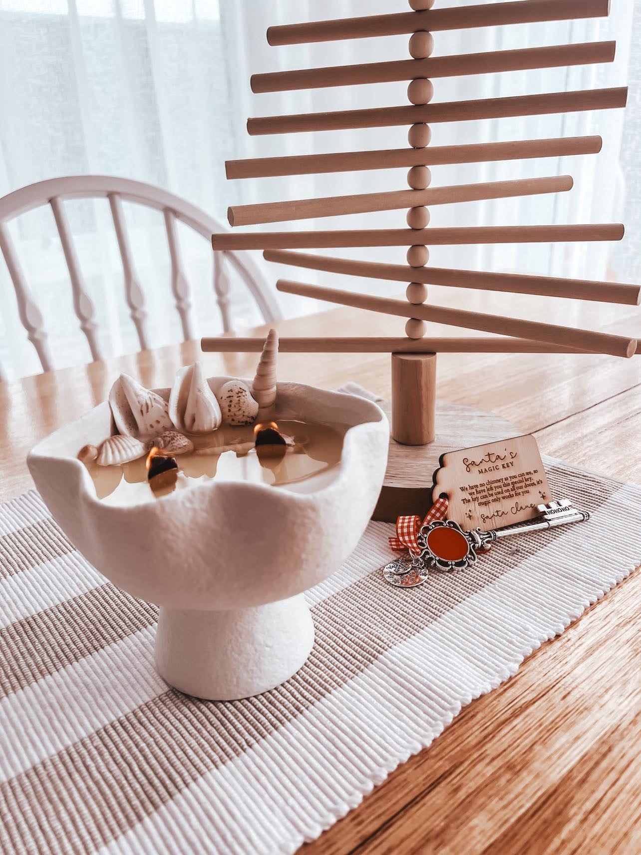 Personalised for your little ones! Our metal key is 12cm in size & attached is 2 gorgeous trinkets that reads “Santa’s special key” & a snowflake + with a timber piece with a special rhyme from you to Santa, attached with gingham ribbon.