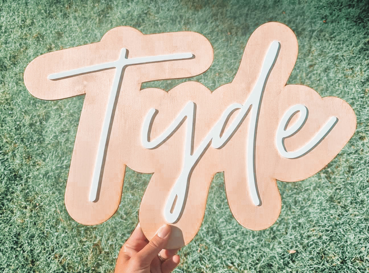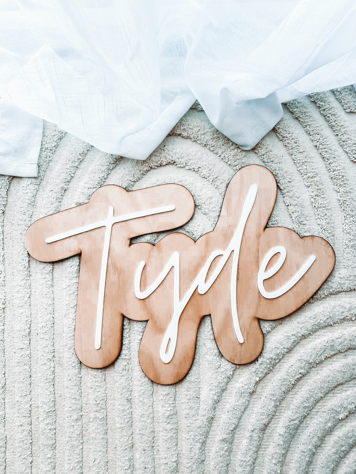 Our beautiful timber oak double name plaques. With gorgeous oak timber & high quality white acrylic. Perfect addition to your child’s room/playroom.